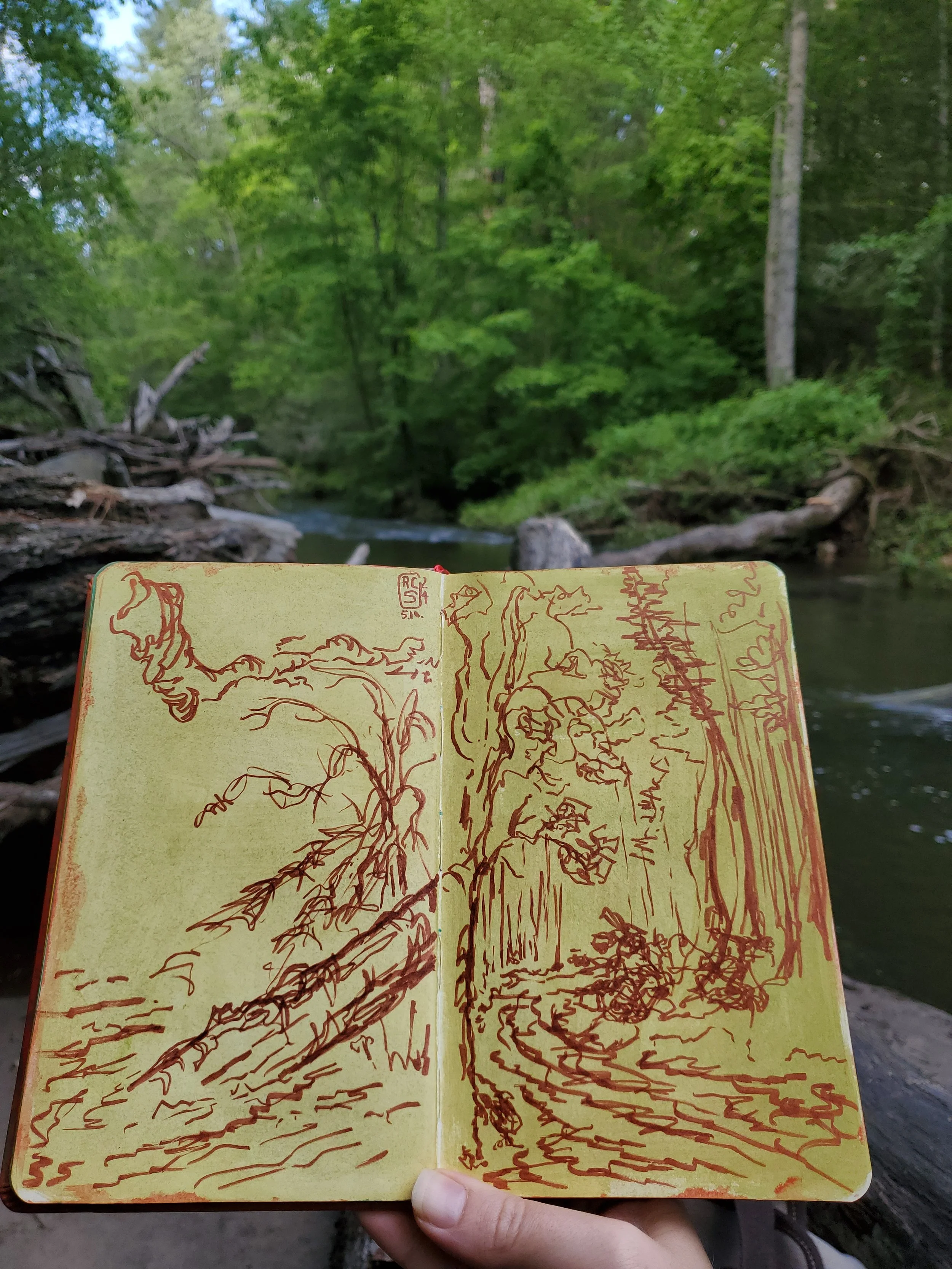 I am most at home - both in my body and forgetting my form - when I sink into moss, mud, stream, and snow. Still enough that the birds return to song. This is the feeling I hope to capture in my sketchbook. We are mammal too, soft and small.